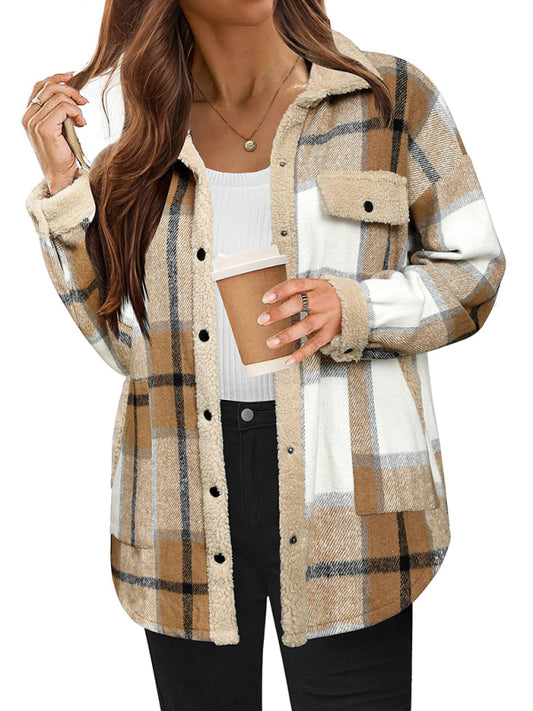 Casual autumn and winter coat contrast color plaid jacket casual lapel velvet coat