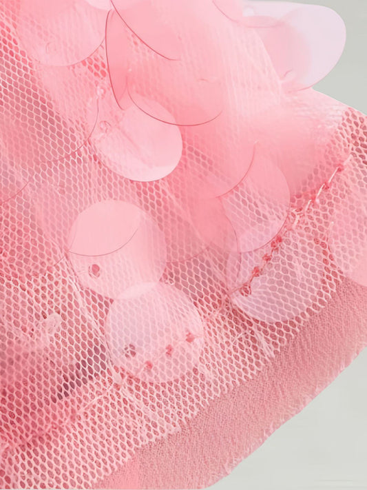 Hot Girl Sexy Sequin Halter Dress Sweet Sleeveless Backless Pink Round Neck Short Skirt